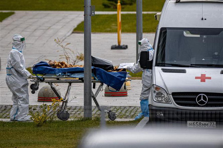 Chuyển bệnh nhân nhiễm COVID-19 tới bệnh viện ở Moskva, Nga. Ảnh: AFP/TTXVN