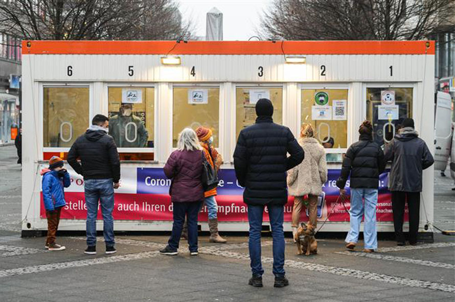 Người dân xếp hàng chờ xét nghiệm COVID-19 tại Berlin, Đức, ngày 12/1/2022. Ảnh: THX/ TTXVN