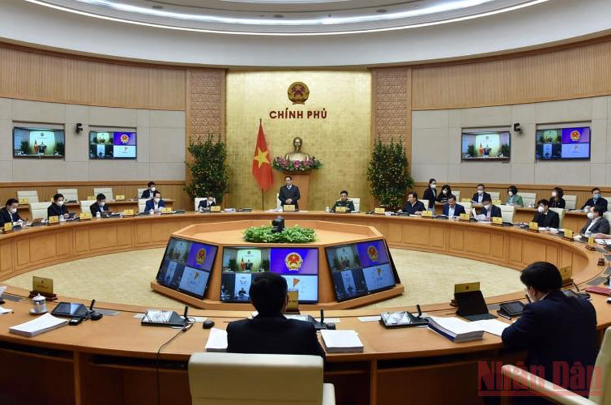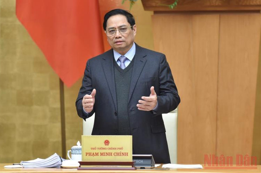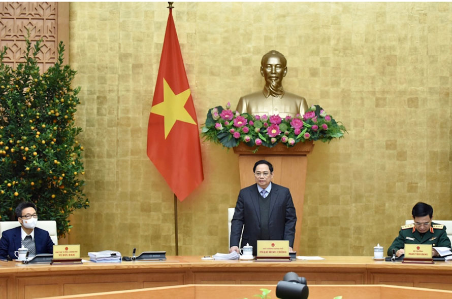 Thủ tướng Phạm Minh Chính chủ trì Phiên họp Chính phủ chuyên đề xây dựng pháp luật tháng 1/2022. (Ảnh: Trần Hải)