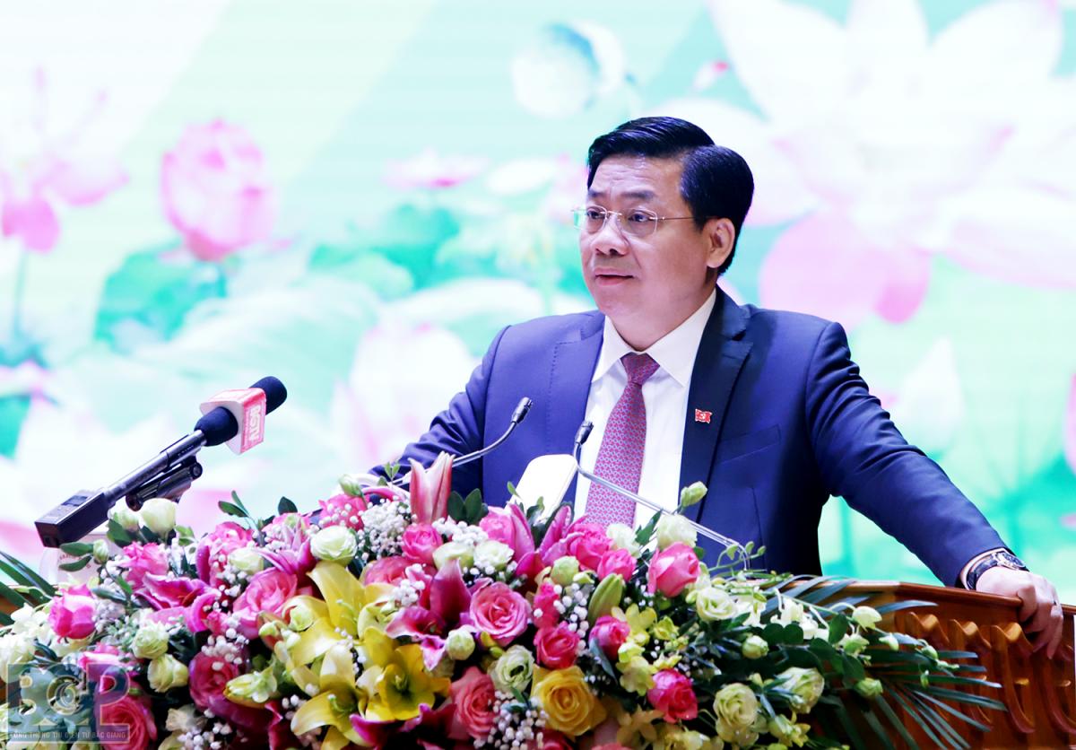 Thay mặt Ban Chấp hành Đảng bộ tỉnh tôi ghi nhận, biểu dương và nhiệt liệt chúc mừng những thành tích và những đóng góp hết sức quan trọng của các cấp, các ngành, địa phương, đội ngũ cán bộ, đảng viên, công chức, viên chức, chiến sĩ lực lượng vũ trang, các doanh nhân, doanh nghiệp, và các tầng lớp Nhân dân đối với thành tựu ấn tượng mà tỉnh ta đã đạt được trong năm 2021. Đặc biệt, xin nhiệt liệt chúc mừng các điển hình tiên tiến được các cấp khen thưởng tại Hội nghị hôm nay.