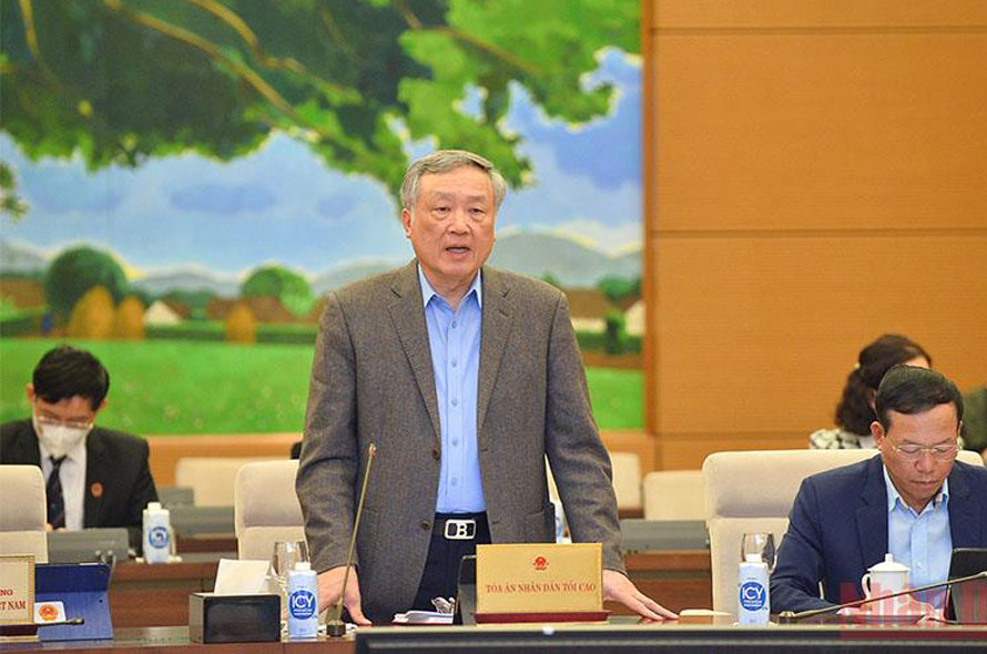 Chánh án Tòa án Nhân dân Tối cao Nguyễn Hòa Bình phát biểu tại phiên họp. (Ảnh: ĐĂNG ANH)