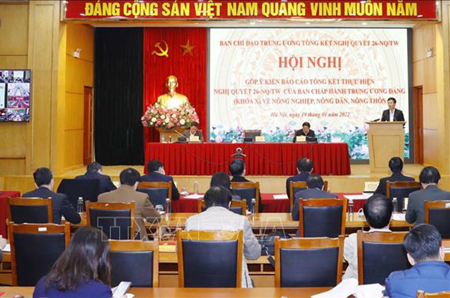 Ngày 19/1, tại Hà Nội, Ban Kinh tế Trung ương chủ trì, phối hợp với các bộ, ngành tổ chức Hội nghị toàn quốc góp ý kiến Báo cáo tổng kết thực hiện Nghị quyết 26-NQ/TW của Ban Chấp hành Trung ương Đảng khóa X về nông nghiệp, nông dân, nông thôn.