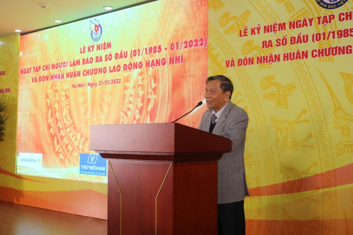 Thiếu tướng, nhà báo Phan Khắc Hải - nguyên Tổng Biên tập Tạp chí Người Làm Báo phát biểu tại Lễ kỷ niệm