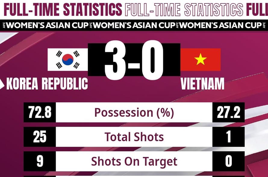 Các thông số áp đảo của tuyển Hàn Quốc trong trận này. (Ảnh: AFC)