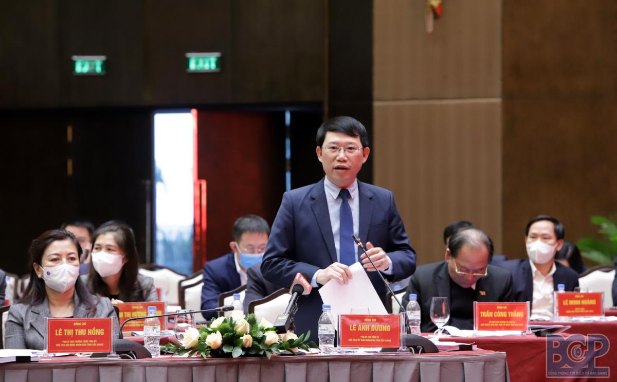 Chủ tịch UBND tỉnh Bắc Giang Lê Ánh Dương phát biểu tại hội nghị.