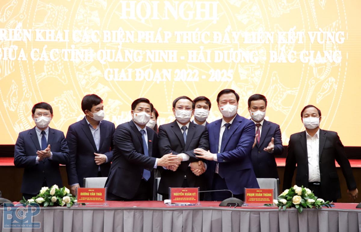 Nhân dịp này, các địa phương ký kết Biên bản ghi nhớ về hợp tác và phát triển liên kết vùng 3 tỉnh Bắc Giang - Quảng Ninh - Hải Dương giai đoạn 2022-2025.