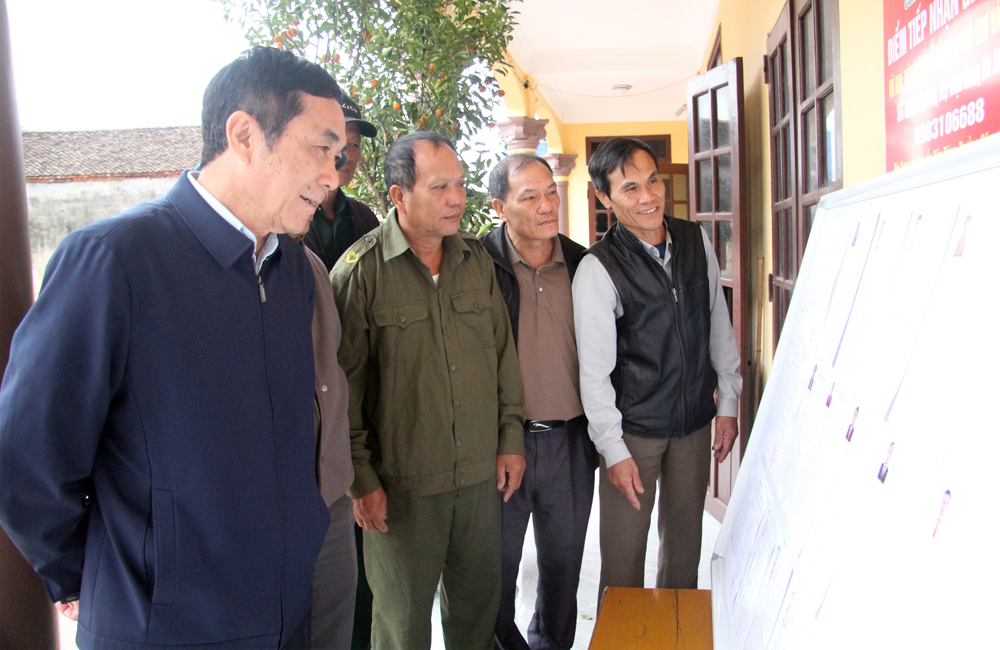 Đồng chí Mai Sơn kiểm tra công tác chuẩn bị bầu cử tại phường Trạm Lộ. Ảnh: Sỹ Quyết.