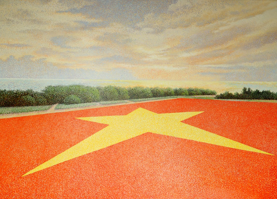 "Lá cờ gốm ở Trường Sa", tranh sơn dầu của hoạ sỹ Nguyễn Thu Thuỷ.