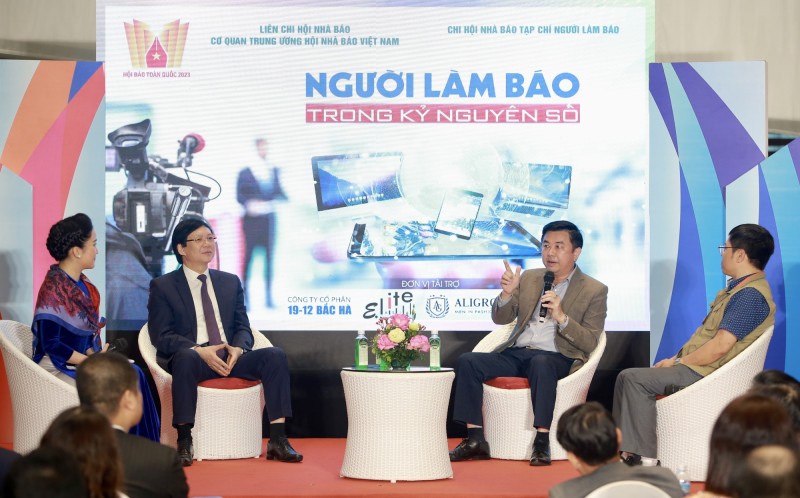 Nhà báo Đỗ Doãn Hoàng - Báo Dân Việt, trong một buổi trao đổi nghiệp vụ với đồng nghiệp